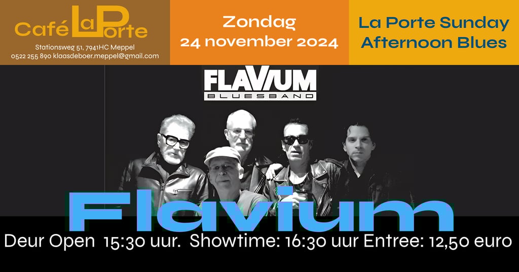 Wil je de magie van Flavium zelf ervaren? Bezoek dan Café La Porte, waar de band 14 december 2025 optreedt. Laat je meeslepen door hun meeslepende blues en geniet van een avond vol muzikale hoogstandjes.