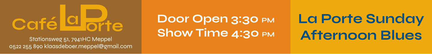 Café La Porte Meppel. Doors Open 3:30 PM / Showtime 4:30 PM