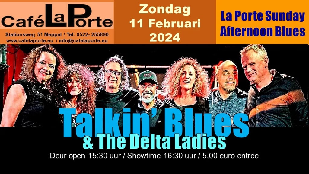 Talkin’ Blues & The Delta Ladies uit Den Haag La Porte Sunday Afternoon Blues 11 februari 2024 Deur open 15:30 Showtime: 26:30 Entree: 5 euro