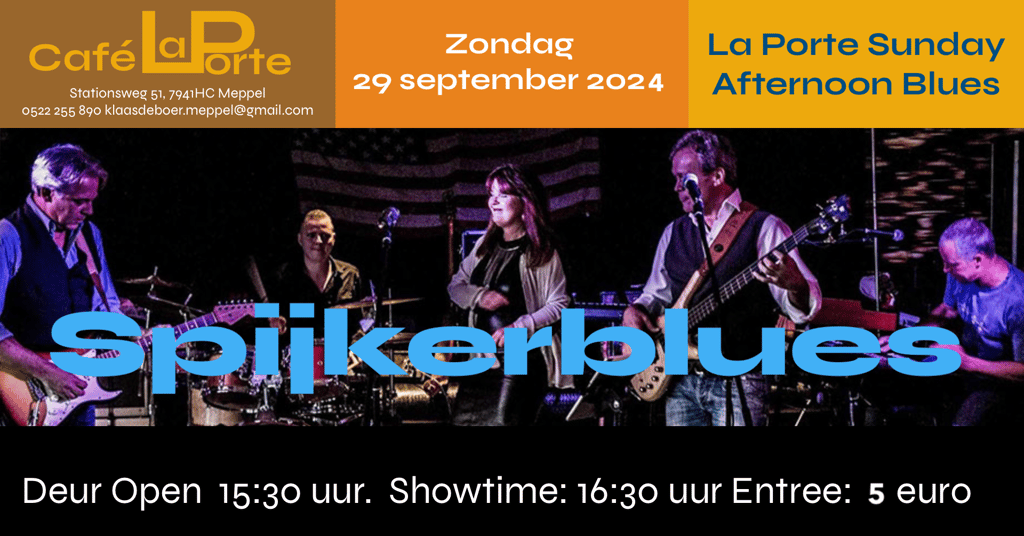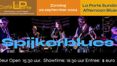 29 september Spijkerblues in Café La Porte Meppel. Deur open: 15:30 Showtime 16:30 Entree 5 euro
