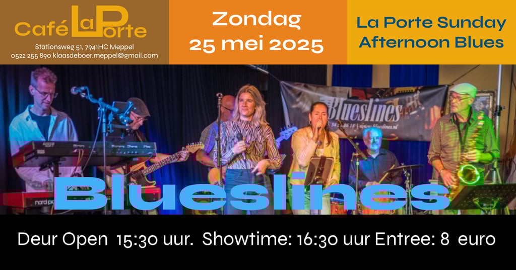 Blueslines staat bekend om hun uitgebreide en gevarieerde repertoire dat zowel klassieke blues als hedendaagse bluesrock omvat. Met een diep respect voor de bluestraditie van Drenthe, brengt de band eer aan legendarische bluesartiesten door hun meest iconische nummers te coveren. Het publiek kan genieten van magistrale vertolkingen van nummers van BB King, waarvan de diepe emotie en rauwe kracht de kern van de bluesmuziek belichamen. Even indrukwekkend zijn hun uitvoeringen van Bernard Allison's energieke stukken, die de moderne blues vertegenwoordigen en de dynamiek van de hedendaagse scene perfect weergeven.