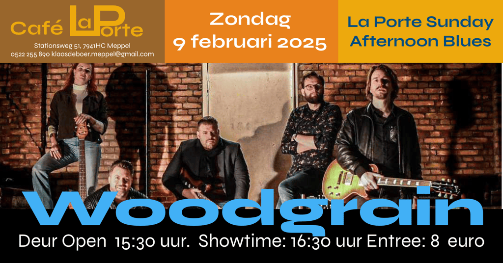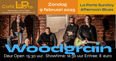 Laat u meevoeren door de krachtige bluesrock van Woodgrain en geniet van een onvergetelijke avond vol muziek.